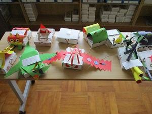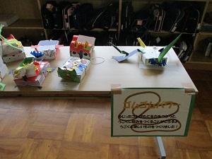 3年生。図工の作品が並んでいました。