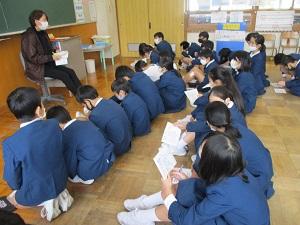 まず校長先生から、今年の干支「辛丑(かのとうし)」の話を聞きました。「辛(かのと)」の「草木が枯れ新しくなろうとしている状態」という意味と、「丑」の「種から芽が出ようとする状態」という意味が合わさり、「何かが終わり新しい出発の兆しが見える年」になるのだそうです。コロナ禍が終息し、英田小の子どもたちがさらに一歩前進する、そんな年になるといいですね。また3学期のスローガン「発展」も伝えました。次の学年に向けて、友だちと力を合わせ、共にジャンプするそんな3学期になってほしいという。その後、学習目標、生活目標の話を聞きました。みんな真剣に聞いてくれていました。