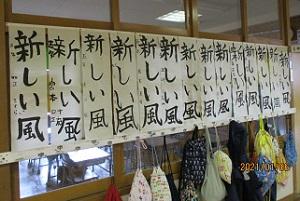 5年生の書初めの文字は、「新しい風」。いよいよ最高学年になる5年生にはとてもふさわしい文字ですね。