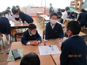 6年生。算数科少人数の授業です。新しく来てくださった先生ともとても和やかに授業していました。