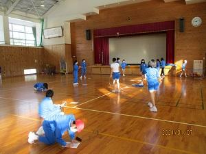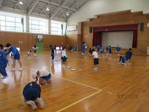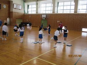 6年生。体育で、なわとびやバスケットボールをしていました。