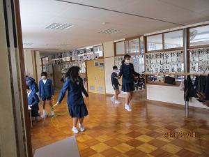 5年生と1年生は、今日から長休みに縄跳び運動を開始しています。蜜を避けるために、今年度は体育館でする学年を決めて行っています。他の学年も、廊下の広いスペースで体を動かしていました。