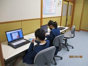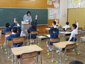 3年生。算数科少人数の授業では、前の時間の復習に、ほとんどの児童が挙手していました。また、昨日の続きのパソコン室での授業も頑張っていました。