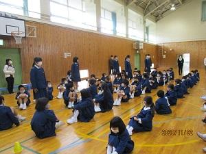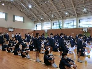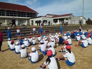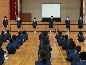 校長先生の話の後、明日いしかわっ子駅伝に参加する児童の壮行会をしました。