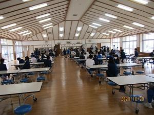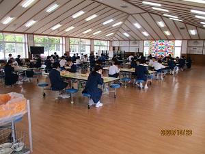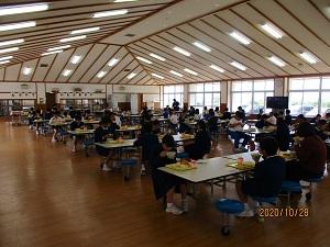 しばらくは暑さのため、教室での給食を実施していましたが、気温も随分下がって来たので、月曜日からランチルームでの給食を再開しました。5年生は、1学期も経験しているせいか、静かに待つ姿勢など4年生のよいお手本となってくれました