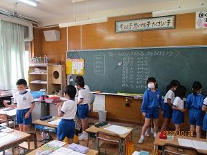 生活目標は、「気持ちのよい言葉づかいをしよう」です。クラスで決めた5つの心が温かくなる言葉をクラスで毎日使えるようにしていきます。どちらもあがたっ子がさらにレベルアップするためのとても大切なめあてですね。お家の方々もぜひご協力ください。