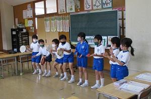 前回は2人でしたが、今度はグループで歌に合わせていました。相手のグループにつられないようにしっかりとリズム打ちができるといいですね。