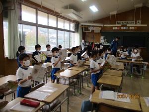 明後日から11月。23日は、勤労感謝の日でもあります。コロナ禍でお世話になった方に折り鶴を折った「みんなでつながろう 英田小学校プロジェクト」。今月は、私たちの周りで私たちのために尽くしてくださっている方々に、感謝する手紙を書いてお渡ししようと考えています。