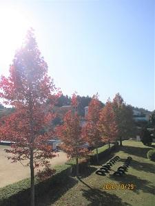 秋日和の毎日が続いています。校庭のモミジバフウは、秋の陽ざしを浴びて本当にきれいです。