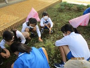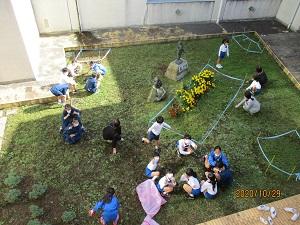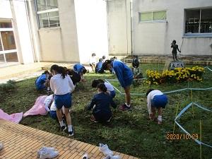 29・30日 2日間のお昼休み、教頭先生の呼びかけで、中庭の草むしりボランティアを募集したところ、たくさんの子どもたちがお手伝いをしに来てくれました。
