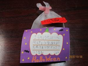 3年生のおおぞらの男の子が、ハロウィンの衣装を着て、お世話になった先生にありがとうの気持ちを伝えてくれていました。