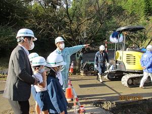 前日に社会科担当の先生がお願いに行ったところ、快く引き受けてくださった上に、安全のためにヘルメットを着け、5人ずつ見学をさせていただきました。