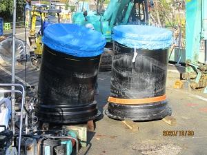 4年生は、1学期に社会科で、水道の勉強をしました。実は今、谷内交差点から学校の前まで耐震水道管の工事をしているということで、今日、埋まってしまう前の水道管を見せていただくことになりました。
