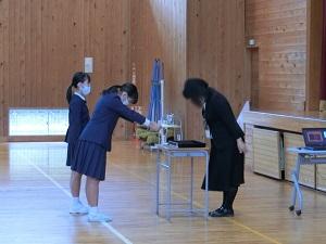 表彰伝達では、社会を明るくする運動標語コンクール、それから校内マラソン大会の表彰をしました。受賞の皆さんおめでとうございます!