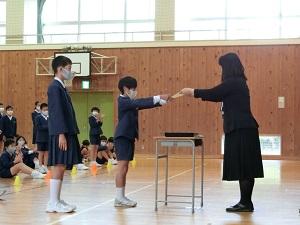マラソン大会は、決して順位ではありません。まずは自分のめあてをしっかり持って、最後まで走り抜くこと、そして自分の今までのタイムより少しでも早く走ることができれば素晴らしいと思います。ですから今年は、自分の1回目に走ったタイムより1秒でも早く走れたら、ジャンプ賞を渡すこととしました。