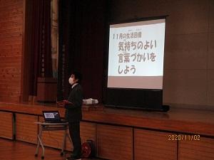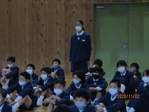 最後は、児童集会です。後期委員会の委員長の自己紹介です。