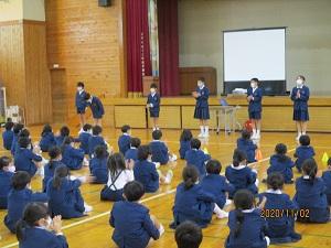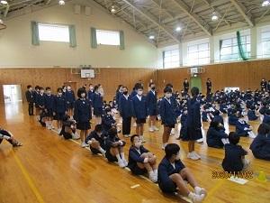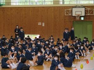 今年はコロナ禍での大会のため、例年とは違い、参加を希望した100校近くの中から上位男女各25校しかさんかできないということで、惜しくも女子だけが本選出場となりましたが、今まで一緒に練習してきた男子や大会には出られないけれども毎日がんばって練習していた児童も紹介され、全校児童の大きな拍手を受けました。