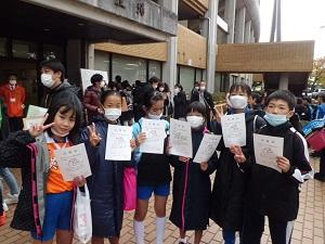 5年生女子、男子、6年生女子、男子の順でスタートしました。5年生はやはり初めてレースで3Km走るので大変だったと思います。そして6年生は小学校最後のマラソン大会。全員が参加し、全員完走でした。