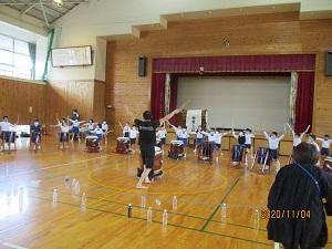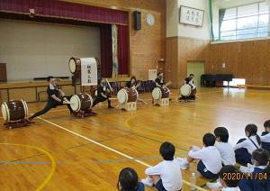 すてきな演奏を聞いた後、太鼓や和楽器の紹介を兼ねて一つ一つの音色を味わいました。