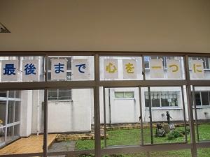 さて、運動会の練習が始まっています。玄関前には今年のスローガンが掲示されました。