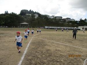 低学年はトラックの内側、中学年はトラックの外側、高学年はさらに外側の運動場のフェンス沿いを走ります。マスクなしなので、ほとんどの児童が待っている時も走りながらも、おしゃべりをせず一生懸命走っていて感心しました。