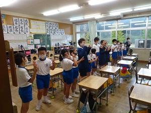 終わった後も、しっかりと顔を上げて話を聞いています。来てくださった先生方にもしっかりとありがとうございましたとあいさつしています。こうやって、粘り強さやあいさつの大切さ、感謝の心が身に付いてくるのですね。