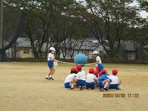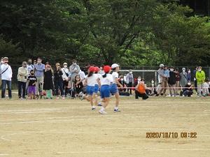 高学年のソーシャルディスタンス玉入れは、大きなバケツのボーナス点が、大逆転のチャンスとなりハラハラドキドキ。中学年のソーシャルディスタンス大玉運びは、柔らかい棒でバランスよく運ばないと玉が転がったり落ちたりしてハラハラドキドキ。そして、低学年の大玉ころがしは、大きな玉について行けず転ばないかとハラハラドキドキ。どの種目も見ていて面白かったです。(高・低学年は、写真がなくて、ごめんなさい。もし保護者の方で、写していらした方がいたら、ぜひ学校にいただければ嬉しいです)