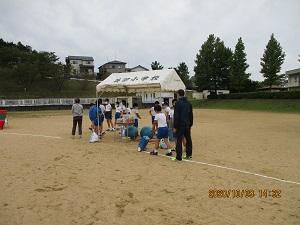 ソーシャルディスタンスボール運びは、なかなか難しい競技で、ハラハラドキドキの連続です。焦らないで落ち着いてゆっくりやった方がうまくいくようでした。明日も落ち着いてね頑張ってくださいね。