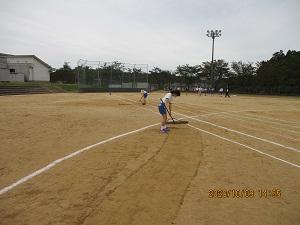 得点係、ライン係、決勝係、開閉会式係、用具係、放送係などなど、みんな頑張っています。