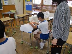運動会で、たくさんの感動を与えてくれた6年生。今日から家庭科では、ミシンを使ってナップサックを作り始めました。そして、春にもお世話になったミシンボランティアの方々が、6年生のためにかけつけてくださいました。