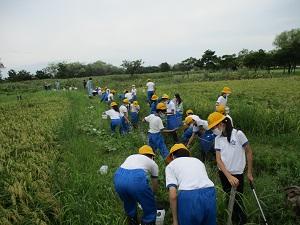 毎年5年生は、総合的な学習の時間に、米作りだけではなく、地域の環境についても学習しています。