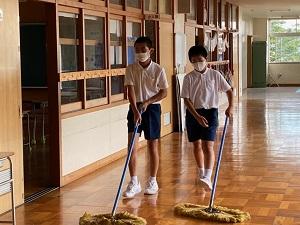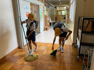 廊下や玄関など,ほこりが目立ってきたなと思っていたら,6年生が働いてくれていました。