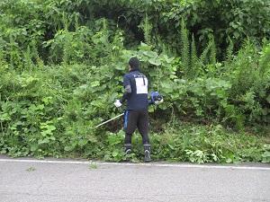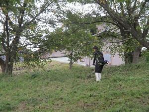 さらにその中のお1人、土野さんのご縁で、津幡町商工会青年部の7名の皆さんも、20日(日)朝に来てくださり、学校の前の草むらの部分をきれいに刈ってくださいました。