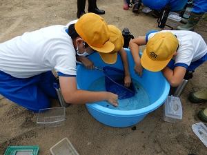 午後からは自分たちが取った生き物を水を入れたバケツに放し,観察を行いました。
