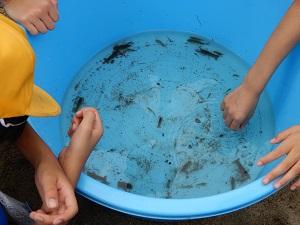 次は、こなん水辺こうえんで、水辺の生き物を捕まえました。