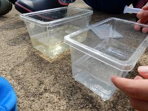 水道水と比べると一目瞭然。とてもよごれていることが分かりました。