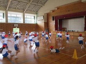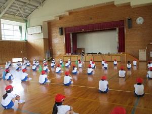 みんな手を大きく回したり、ピンと伸ばしたり、ノリノリで踊っていました。途中でグループごとにしゃがむ場面も、息がぴったり合っていましたよ。もうほとんどの子が踊りを覚えている感じがしました。きっとお家でも踊っているのかもしれませんね。