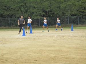なんと、4年生が3年生を一生懸命指導しているのです。「ここは、足をもっと上げて」「こんな感じだよ」「もっと腰を低くして」などなど・・・きっと去年自分たちも教えてもらったのでしょうか。