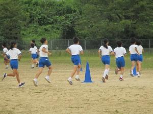 若手の先生(学生時代陸上の中長距離が専門だったそうです)にペースメーカーとして走ってもらいながら、みんな頑張っています。もちろんこれは希望者のみで、選ばれた選手としてではなく、自主的に参加している児童です。そのやる気には本当に感心しています。