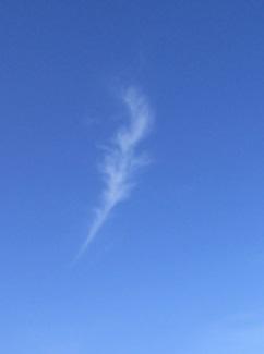 朝、玄関で子どもたちを迎えていると、空にすてきな雲を見つけました。