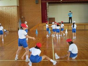 3限目は、低学年が「鬼滅の刃」のテーマソングに合わせてリズムダンスをしていました。