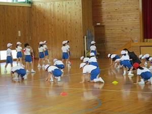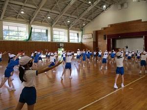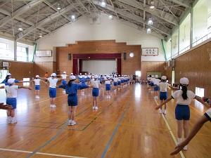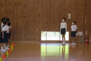 1・2年生の表現の練習のようすです。みんな距離を保って、練習を頑張っていました。