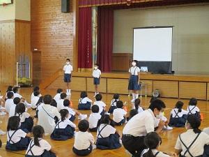 児童会タイムでは、企画委員会・体育委員会からのお知らせと、給食委員会からのクイズがありました。
