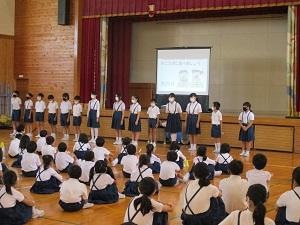 1つめは、あいさつのことです。みんなでしばらくの間、自分たちのあいさつが何点か表を見ながら平均点を出し、自分たちのめあてをしっかりと決めて取り組もうという話をしました。もう一つは、学校に来るのが楽しくないと思っている人がいて、もしその人が悩んでいるのなら、ぜひ相談してほしいし、誰かに何かされたり言われたりしているのなら、それは絶対許さないというお話もしました。みんな真剣に聞いてくれていました。辛い思いをしている子が一人でもいなくなって、みんなが安心して来れる英田小学校にしたいと伝えました。校長先生の思いが伝わったように思えました。