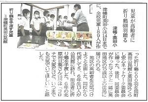 さて、8月15日の北國新聞に、英田小学校の「折り鶴プロジェクト」の記事が載ったのでお知らせします。