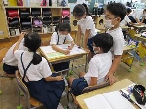 感心したのは、1年生にアンケートを取るために全部ひらがなで書いたり、漢字に読み仮名をつけたりしていたことです。相手のことを考えて何かをするってすごいですね。「利他の心」が育ってきている4年生です。