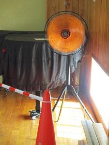 ピアノの隣の隅とその対角の隅の2か所に置くことにしました。意外と風力が強くて感心しました。