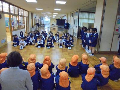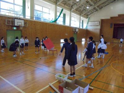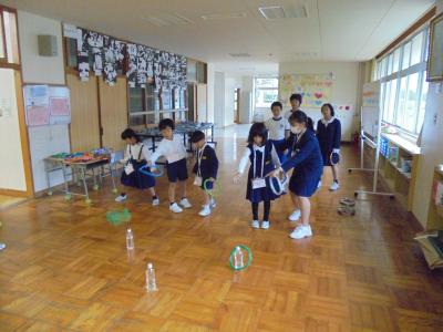 能瀬保育園のひまわり組(年長さん)のみんなを学校にお迎えして,遊び交流会を行いました。