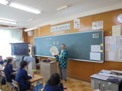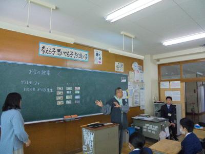 今日はお金の価値,物の価値について,実際のお札やお菓子などを使って,楽しくお話をしていただきました。お金の価値は日本中どこへ行っても同じなのですが,「お金の扱い方によってその人の価値が分かる」というお話が一番印象に残りました。