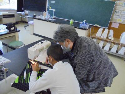 毎回ボランティアの皆さんにお越しいただき,ミシンの使い方や縫い方などを教えていただきながら,作業を進めていきました。